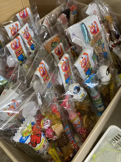 詰め合わせを作る作業はなかなか大変だったけど、「これ、あの子が喜びそうだな」「これは〇〇ちゃん好きそうだな〜」と、一人ひとりの顔を思い浮かべながら選ぶ時間は、とても楽しかったです。