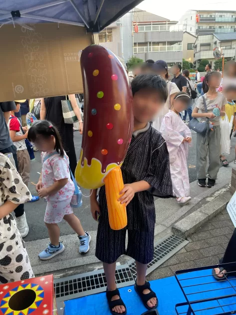 今年やったのは、スーパーボールすくい、くじ引き、宝石すくい、ヨーヨー釣り、それからおもちゃの販売を少し。
